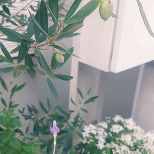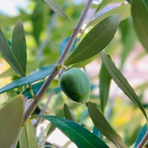 オリーブの木に一粒の実を発見👀‼️ ひとつだけ実がなっていたのね~ 今日初めて気が付いた❣️ 昨日の台風🌀の雨や風にも落ちずに頑張ったんだね… ( ᵒ̴̶̷̥́ ·̫ ᵒ̴̶̷̣̥̀ )エライ