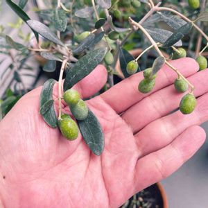 オリーブの実 順調に大きくなってます🫒 だけどこのオリーブの実どうしよう💦 1000円くらいの小さな苗木を植木鉢に植えて3年。2種類並べて実をならせる気満々でやっとうまくいったけどその先を考えてなかったなぁ。 今度は幹を太くして樹形を整えよ😊