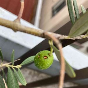 あれ?実がついてる! うちにはこの1本しか植えてないし 隣近所にはオリーブの木が無いっぽいから 実がなることは無い!と思ってました。 虫さんが媒介してくれた?