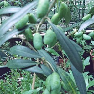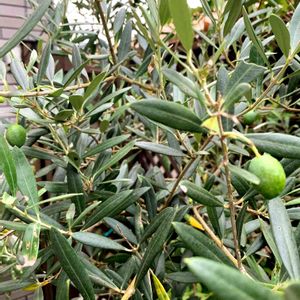 鉢植えにしているオリーブの木に実がなっています!小さな苗木から5年位経ちますが、初めてです🌿嬉しいけど10個位ですから用途はあるかな?観賞用でしょうか🤗