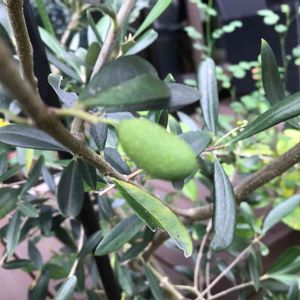 玄関組のオリーブツリー🌿 ふと気付けば立派な実が…😃 うちにはオリーブツリーがふた株ありますが、今年花をつけたのはこの株だけ 把握している限り近所には他にないはずなのに、どうやって受粉したのかな?🤔 期待してなかっただけに嬉しい誤算でした😉✨