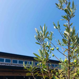 青空に黄緑色のオリーブの実がかわいいなぁ(*'▽'*)