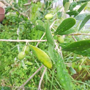 おはようございます、昨日upしたオリーブの実ブルーベリーでしたごめんなさい🙏これがオリーブデス、昨年小豆島から二本買いました!花はたくさん咲いたけど実がならないと、昨日見つけました3個なってました💕