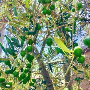 我が家のオリーブ! 息子の生まれた記念樹は 5年目なのに実がならない😭 なのに娘の生まれた記念樹は 一年もたってないのに、 実がなってるー😍❤️