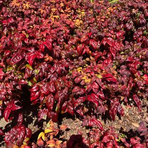 ラナンキュラス のような 美しい八重の真紅の薔薇🌹 とてもお安くて、、 でも名前がわかりません😅 娘宅の紅葉したオタフクナンテンと シロタエギクをもらって、添えて お気に入りの瑠璃色のスクエアの器に 入れて、出窓に飾りました。 朝日でガラスが透けて良い感じ💞 水曜ローズショー🏷に参加させてくださいませ。