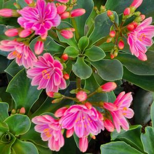 こんにちは👋😃 レウィシア。 10号鉢。6苗。 まん中が、満開です。 きれいに咲いています。 ひと苗だけ花芽が、あがっていませんが、たくさん蕾が、あがっています。 雨にあてないように、明日からは、軒下に移動させなきゃいけませんね。