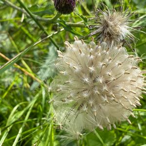 おはようございます😃 ノアザミの花後の綿毛、ふわふわで、ケサランパサランのようです。