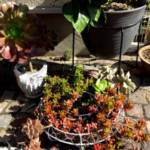 パンジーの寄せ植えに使っていたワイヤーリースを 多肉のこぼれ葉っぱの避難所にしていたら、いつのまにかモリモリに😹 とりあえずの避難所だから、バランスとか皆無でわたし的にはイマイチなんだけど、 なぜか夫のお気に入りらしく、 エントランスの目立つ場所に設置中。 次の春にでも植え替えしよ〜🤖🤖