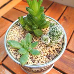 おはようございます✨ マイペース更新続いております💦 本格的に寒くなる前に(ベランダに出る頻度も減るだろうし😝)色々備えをしなきゃなーと思いつつ、不必要なことばかり····· 前の投稿で触れた、キャンドゥで出会った多肉ちゃん+サボさん寄せ! サボテンには手を出さないでおこうと決めてたのに、あまりの造形の可愛さに~😆 でも連れて帰ったら名札落ちてて、お名前不明(笑) このブリキ缶に3匹セットで気に入ってしまって寄せたけど、サボテンとハオルチア寄せて大丈夫なのか~?😅💦