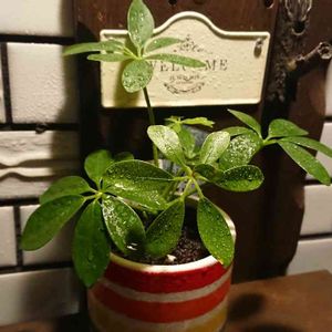 キャンドゥ産パキラ連れて帰ってきました😊 本当は実生パキラが良かったけど、いろいろ探して発見できず。。。 早速鉢に植え替え。 元気に育つといいなぁー!