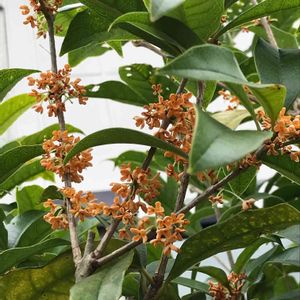 庭の生垣から甘い香りがします!ハロウィン🎃カラーのオレンジ色。キンモクセイの入った紅茶の味が忘れられず、直接摘んだ花を乾燥させて作ってみようかと。