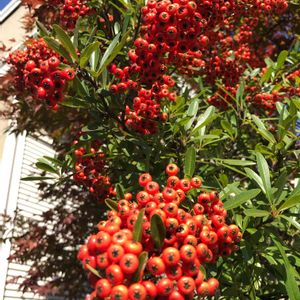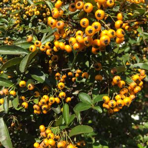 こちらは真っ黄色のピラカンサです! 春先の受粉の時期に長雨だったせいか、ヒメコガネの飛来も少なく、例年の実付きに比べると半分以下で、ちょっぴり寂しい感じです!鳥さん、見つけないで!