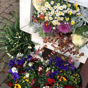 アプローチに飾った花💐達が、優しく新聞配達のお姉さんをお迎えします♪ お正月に作ったDIYの💐達もしっかりと咲いてくれています。華やかでしょ!