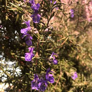 まだまだ一分咲き!花穂に触れると、ローズマリーの優しい香りが! 車庫沿の腰高に花壇があるため、車🚙に乗る時、肩が枝にちょっと触れただけで癒されています! 心穏やかに安全運転、安全運転⁉️