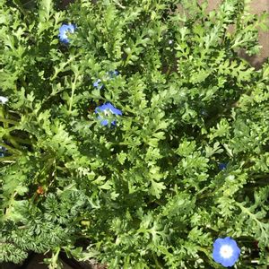 秋に小さな苗木🌱のケースを買ったのですが、名札を付け忘れ、何の花💠だっけ? Googleってネモフィラと分かり一安心⁉️ 満開になると一面ブルーになるはず。 今は一分咲き。満開が楽しみ❗️