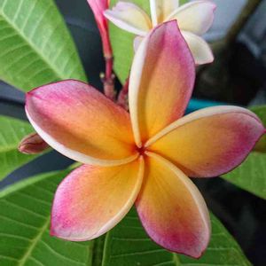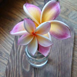 落ちてしまったプルメリアの花はこんな感じで飾ってます。調味料の空き瓶(^^;