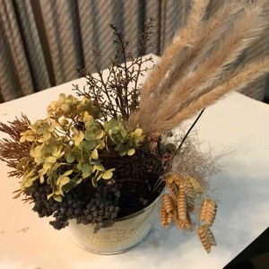 ドライカップアレンジ❗️ 16種類の草花木のドライ素材をブリキカップにグルーガンで固定しました。 暫くハンドメイドを休んでいたら、素材が山積してしまったので、同じ感じのカップを5つも作っちゃいました!