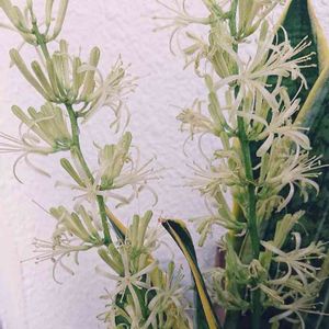 サンスベリアの花を夕方見てみたら、開いてました。不思議👀