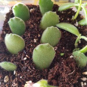 熊童子沢山になったので 葉挿ししてみました 咲終わったお花もついでに… どうなるかしら?
