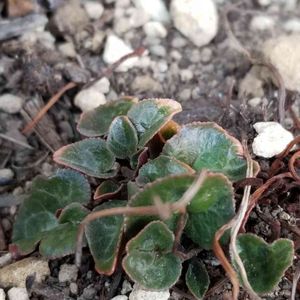これは❗ ガーデンシクラメンの様? 3、4年前からいた子。 もうダメと思ったけど捨てずにいました。 軒下を見たら なんと、こんな感じになってました。 頑張ってる様子を見て 何とか育てようと思いましたね😃