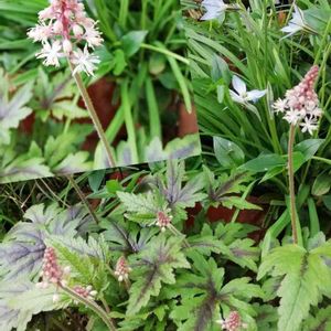 ティアレラ₊❀̥୭ 先月upしたコはまっ白な花でしたがこのコはほんのりピンク❗💕 うなじが色っぽい🎶(〃ㅅ〃)♡ ティアレラではなくヒューケレラかもしれません??🤔