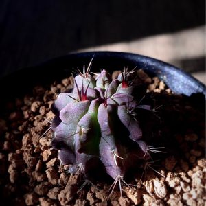 Eriosyce jussieui(エリオシケ 桃燻玉) 元旦に鶴仙園さんの初売りでお持ち帰りした私好みの可愛い赤紫さん🍷✨ 夕方遅い時間に行ったから新年早々店長さんと沢山お話ができて、ずっと気になっていたことも訊けて、めちゃくちゃ緊張したけれど嬉しかった☺️