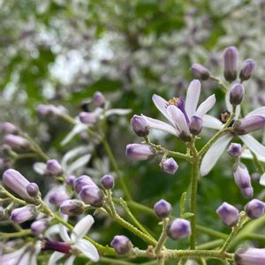 父のお墓参りで出会った、センダンの花🍀 大きな木に、薄紫色の花が満開でした😄 強風に枝が大きく揺れて、なかなか写真が撮れませんでしたが、上手く枝先に手が届いて、やっと撮れた一枚です😊 栴檀は双葉より芳し、という言葉は知っていましたが、お花を見るのは初めてで、なかなか名前が解りませんでした😅 フォローしている植物系インスタに、たまたま季節の花として、今日アップされていて、やっと名前が判明😊😄 淡い藤色の花が、風に揺れる様がとても美しく、しばし時を忘れ、眺めていました✨🍀💕😊