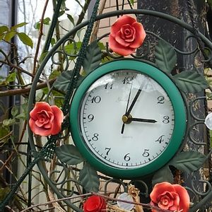 おっと‼おやつの時間だ🎵なんて、本当は壊れた時計を庭に設置してみました。ゴミは極力減らす主義です😄