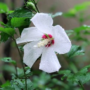 おはようございます。 ムクゲの花が咲きました。 雨上がりに撮りました。 最初に咲いたムクゲです。