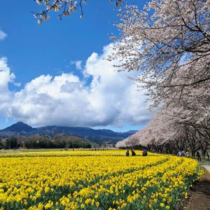 うめこさんの投稿を見て、今日、岩井親水公園へ行ってきました🎵🌸🚙💨 満開の桜と一面の水仙のコラボが見事でした❕😄🎶 明日からいろいろ忙しくなるので、今日晴れて見に行けてよかったです🎵 (*^▽^*)👍 みどりのまとめにもUPしてありますので、よろしければご覧ください☺ 5枚目のpicで、🏷️石の日 に参加します☺