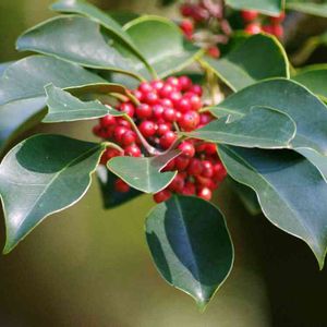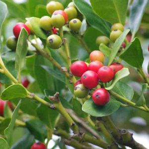 ★ 食べて遠くへ運んでシリーズ モチノキ 黐の木 モチノキ科 モチノキ属 の 常緑樹 雌雄異株 昨日 投稿した 木斛と 同じお宅で 撮影させて頂いた「三大庭木」の ひとつです。 雌木の 黄緑色の 雌花は 4月頃 数輪がまばらに咲くだけであまり目立たないそうです。 雄の木の 雄花は 葉の付け根にこんもり咲くため見つけやすいのだそうです。 秋10月~11月になると 写真のような 直径1センチ程の朱色の実ができます。 実 からではなく、樹皮から 鳥黐(とりもち) の 原料が 採れるんですって。 鳥黐というのは ネチョネチョのガムみたいな 粘着物。 それを 鳥が羽を休めにとまる 木の枝などに 塗っておくと 鳥の足が くっ付いて 飛び立てなくなり…… ( あ~ 可哀想 ) そうやって 鳥を捕まえるのだそうです。 この木に出会うよりも先に、投稿を拝見して 鳥黐の事を知り 覚えちゃってました。 なので、この木が 黐の木だと 教えてもらった時 「あ~ あのトリモチの木 ねぇ~」って ニヤニヤ 独り言。 ぷぷぷ。 そして、昨日 教えて貰ったのですが 今は 鳥黐で鳥を捕まえるのは 違法なんですって。 撮影 2019年 10月下旬