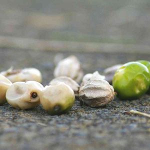 ★ 食べて遠くへ運んでシリーズ センダン 栴檀 2/2 すぐ近くの クロガネモチの真っ赤な実は わんさか残ってるのに… ショボン。。。 でも タダじゃ帰らないのだ! 木の足元をキョロキョロ。 落っこちてる実を 集めましたよ! 右端っこ:まだ 青く 硬い実 左端っこ: 完熟した白い実 左2番目: 完熟し ぶにゃぶにゃに なった実 右 2番目: まわりの実は無くなり カラ カラに乾燥した硬い種 撮影 2020年 1/11 ( お花の投稿 2019年 5/24 ) ( 夏の枝ぶり投稿 2019年 8/18 ) ( まだ若い実投稿 2019年 12/1 )