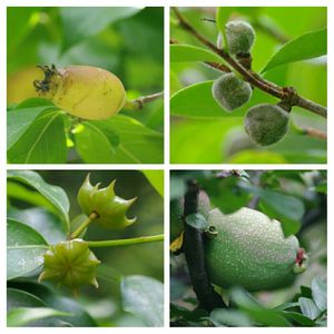 じゃじゃん クイズです!!! この実は、なぁ~んだ 左上 右上 左下 右下 の 順で 答えてみよー 簡単かなぁ~ いづれも 6月に 撮影したものです。 お花は 12月~3月の間に 撮影しています。(12月~4月に投稿済み) 皆さま の チャレンジ お待ちしてまーす ・・・・・・・・・・・・・ クイズの 答え合わせ まずは 上の段から 左上 ソシンロウバイ 蝋梅って 漢字で見ると 梅の仲間?! しかも 甘~い香りの お花だったなぁ。もしかして 実も 甘くて美味しいのかしら? って 思っちゃいますが… ブッブー 梅の仲間じゃないし、種は 有毒なんだそう! 実も 美味しくないのかなぁ 鳥たちも 食べないらしいんです。 お花の投稿 2020 2/28 右上 サザンカ ツバキとよく似た お花で あれれ?サザンカ?ツバキ?って 迷うこと ありますよね。 一番簡単な 見分け方は、じつは 実を 見れば 分かるんだそうです。 ツバキの実は ツルツル 艶々 サザンカの実は拡大してみると わかると思いますが 毛があり 手触りは ザラザラでした。ツバキより ちっちゃいかな。 お花の投稿 2019 12/8 下の段です 左下 シキミ 秋に 熟したら 実が裂けて 中から… 何だか 面白そうなので 秋のお楽しみにとっておこうかなぁ~ くすくす あっ でも この実 有毒なので 八角と似てるからって 食べちゃダメですよ! 要注意! お花の投稿 2020 4/5 右下 ボケ ゴロンと 大きなこ実、秋に黄色く熟しても 硬いままだそう。 酸味と渋味が強いので 生で食べるのは… 果実酒やジャムにして 美味しく食べられるそうですよ。 お花の投稿 2020 2/27 実の 撮影 2020 6/21 高校の校庭外側植栽 公園 植物園 など