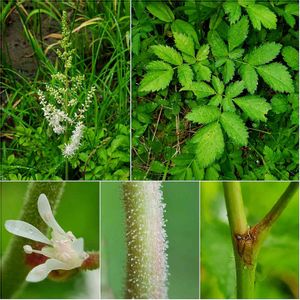 山道で会いました。 ググって見ましたが、お花は アカショウマ 似ていますが 花序の 形や 小葉の基部の形が 違う様です🤨 ちょっと 行き詰りです😅 何でしょうか? 教えてください🙏 アカショウマと同じ仲間の「チダケサシ」と 教えて頂きました🥰
