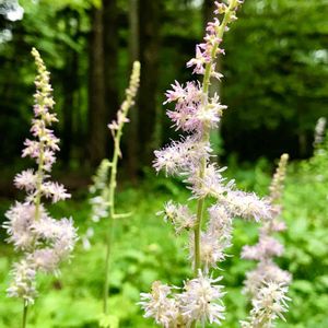 昨年までは1株だったチダケサシさん🌿 今年は一気に株数が増え 可愛らしい姿を見せてくれています😃 ✨✨✨ 【チダケサシ(乳茸刺 )】 Astilbe microphylla Knoll ユキノシタ科チダケサシ属の多年草 高さ 40〜80cm 花期 7〜8月 日本固有種