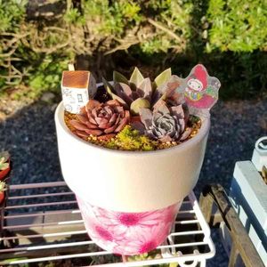 おはようございます🙆 またまたちゅりサンの鉢〜❀ 今回はガーベラ模様ですღ 4号鉢で、とっても綺麗❤ ↙サンタルイス ↑ジュリース ↘ゴールドマニー あとは、セダムやドラゴンズブラッドを少し(笑) 天気がよく気持ちいいです☀