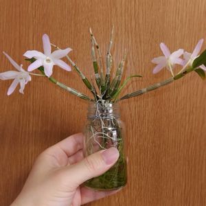 こちらは2024年の世界らん展で購入しました(^^) プラの板に付いていて3株買ったのですが1つはそのまま2つは鉢に植え替えました。 やはりそのままにした方はダメになってしまい2つが元気で花芽をつけてくれました😊 27番