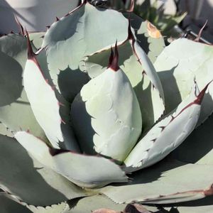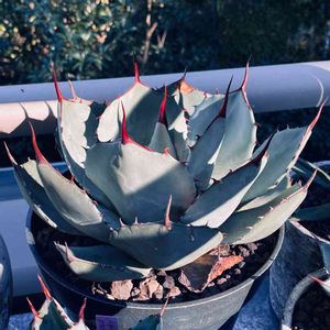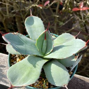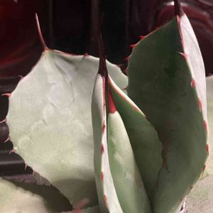 アガベ・パリー トランカータ。耐寒性が非常に高いのもあって、新葉を展開中です。 赤棘と白肌のコントラストがたまらないです🥰 来年は一回り大きくなりそうですね😎