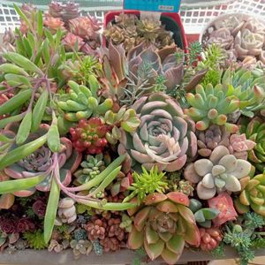 今日の寄植え✨💐✨ 真ん中エコラテさんとオリビアさん🪷 脇に百均オウレイさん、その他大勢😅の寄植えです。