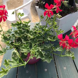 一番好きな花アイビーゼラニウム。 斑入りが珍しいエフカ 葉だけ見ても楽しめるのですが、花がもう少し種類が出てくればいいのに(☝︎ ՞ਊ ՞)☝︎