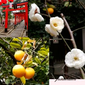 こんにちは😃 姫路城🏯の近くにある「播磨国総社」 買い物の帰りに寄って今年最後の参拝をして来ました 拝殿の横や裏側に行くと沢山の神様がお祀りされています(総社ですから) 今年も種類を知らない柑橘類が実っていました 2枚目は 今年最後の紅葉🍁 「粟嶋社」の鳥居に掛かって綺麗です