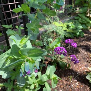 紫のハーブ ヘリオトロープ✨ 和名はキダチルリソウ 開花期が長く6月から今も咲き続けています。 香水の原料でバニラのような香りが。 そして深いグリーンの葉の色がとても綺麗です。 話しは変わりますが、6月に庭で採れたブルーベリーを冷凍保存しておいたので、昨夜はジャムを作りました。ヨーグルトに混ぜていただきます(^_-)あまり煮たたせず、ベリーのつぶつぶを残すのがポイントです。