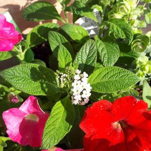 夏の花にトレニア2色と濃い紫の香りがするヘリオトロープ植えました バラ咲きが可愛いゼラニウム‘ミルフィーユローズ’も咲いてくれてます
