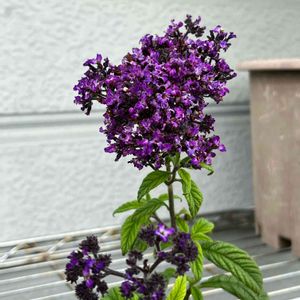 今朝のヘリオトロープ✨ 今年は暖かいのかまだ花が咲いています💕 花は香料の原料に使用されているそうで甘い香りがします。 今日はすごい強風なので場所を移動させてもお花が結構落ちてしまいました(泣)