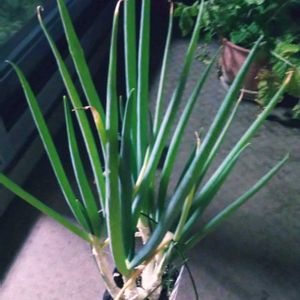 今日のお花🌼のネギです😃。 お花(ネギ坊主)の時期じゃないので、葉っぱ🌿だけです。 このコは何代目かわからない万能ねぎです。 蘇芳の親も蘇芳もは万能ねぎは根っこを植えといて、葉っぱ🌿を収穫するものと認識しているので、ベランダの鉢に植わっていることが多いです。だから何代目かわかりません😅。 GSによく投稿していた極太で巨大ネギ坊主をつけていたコは枯れてしまいましたが😭、この後に植えたのは順調に大きくなっています。 寒くなってきたので、絶賛太くなり中です。😃