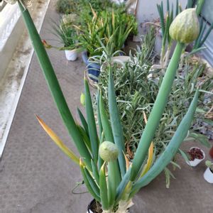 昨年スーパーで買った根付き万能ネギをアイスの空プラで約一年育てて頂いて来ました 花芽が出来そうです😊