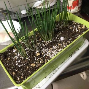 4 / 2 万能ネギ せり みつば 根付野菜 の 根植え の プランター菜園 1月に食べた野菜の根元数㎝を植えた もう 食べれる✂️天ぷら🔪🎽👩🍳かな❕ 青じそもこぼれ種が🌱発芽🌱凄いなぁ🎵 🌿葉っぱ色🌿せり みつば 🌿緑がきれい < チープな家庭菜園でした…💦 >