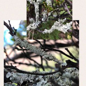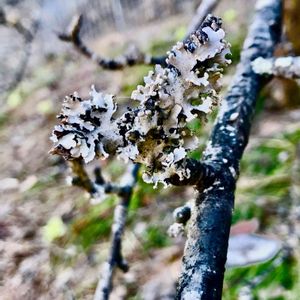 ウメノキゴケに被われた古木 コケの名前がついててもコケの仲間じゃありません… 田んぼのお散歩してて…苔真下(コケました)