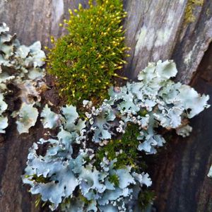 ウメノキゴケ よく樹木に見かけていたこれはなんだろう??と調べてみたらウメノキゴケと言うみたいです。 コケと言いつつも地衣類という菌類が藻類を共生させることで自活できるようになったものとのこと…(ΦωΦ)フムフム 菌類が菌糸で構造体を作り、藻類が中の環境で光合成をして菌類に栄養を供給することでお互いメリットがある共生関係の様です。 んーおもしろい(´・ω・`)