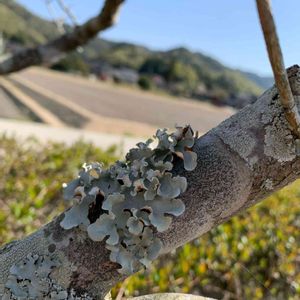苔でしょうか?教えて下さい🙇♀️ ありがとうございました😊 『ウメノキゴケ』と早速教えて頂きました。 名前にコケと付いてますが、地衣類だそうです! ネット検索で学習しました❗️ *木に害は無く、木が弱って来て成長が止まり樹皮の生まれ変わりが出来なくて生えるとの事です! *車の排気ガスに弱く、空気の綺麗な場所でしか見られないとかです❣️ ✨さすが!田舎〜 お陰で人もゆったり穏やかな方が多いです🤣 地区の公民館の庭のツツジです!株元の枝にグレーと言うか見方では、青緑の様にも見えました。 ツツジは、葉も付いてて元気そうでした! 乾いた感じでガサガサしてました❗️ 一寸、気持ち悪いですね🙇♀️
